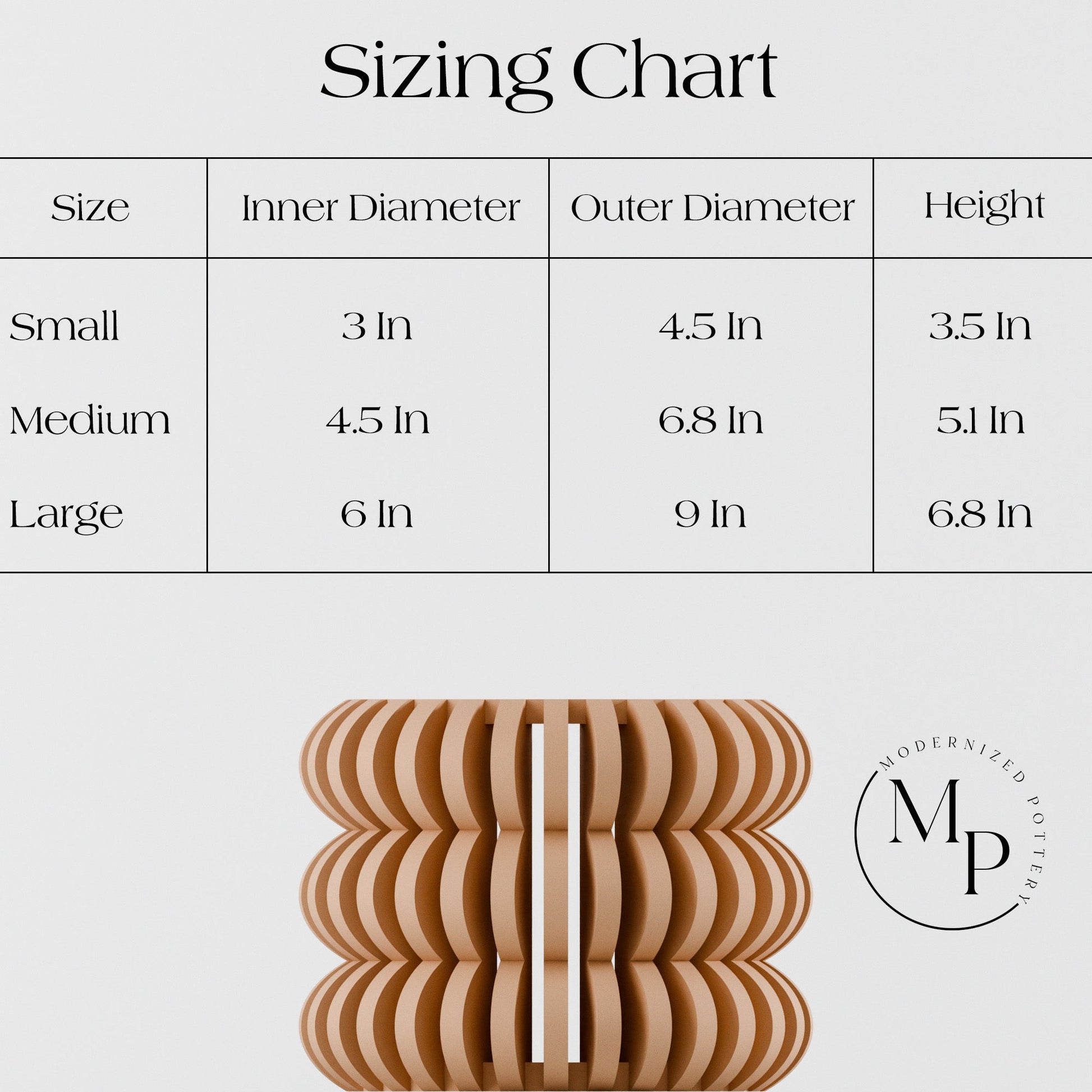 - Large: Inner Diameter: 6 In, Outer Diameter: 9 In, Height: 6.8 In